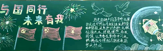 教室内部同样热闹非凡,一块块主题黑板报成为传递双节情感的重要载体。学生们发挥奇思妙想,用五彩画笔勾勒祖国壮丽山河,用文字记录新中国辉煌成就,嫦娥奔月的浪漫、天安门城楼的庄严、航天事业的突破等元素跃然黑板之上。“我和同桌花了两节课画这幅‘山河无恙’,就是想把对祖国的喜欢都画进去!”六年级学生王梓轩指着自己的作品,眼里满是激动与自豪,每一幅黑板报都成为教室里独特的“爱国文化角”。